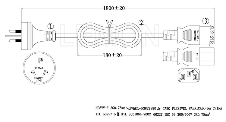 3 Pin Australian Plug Power Cable